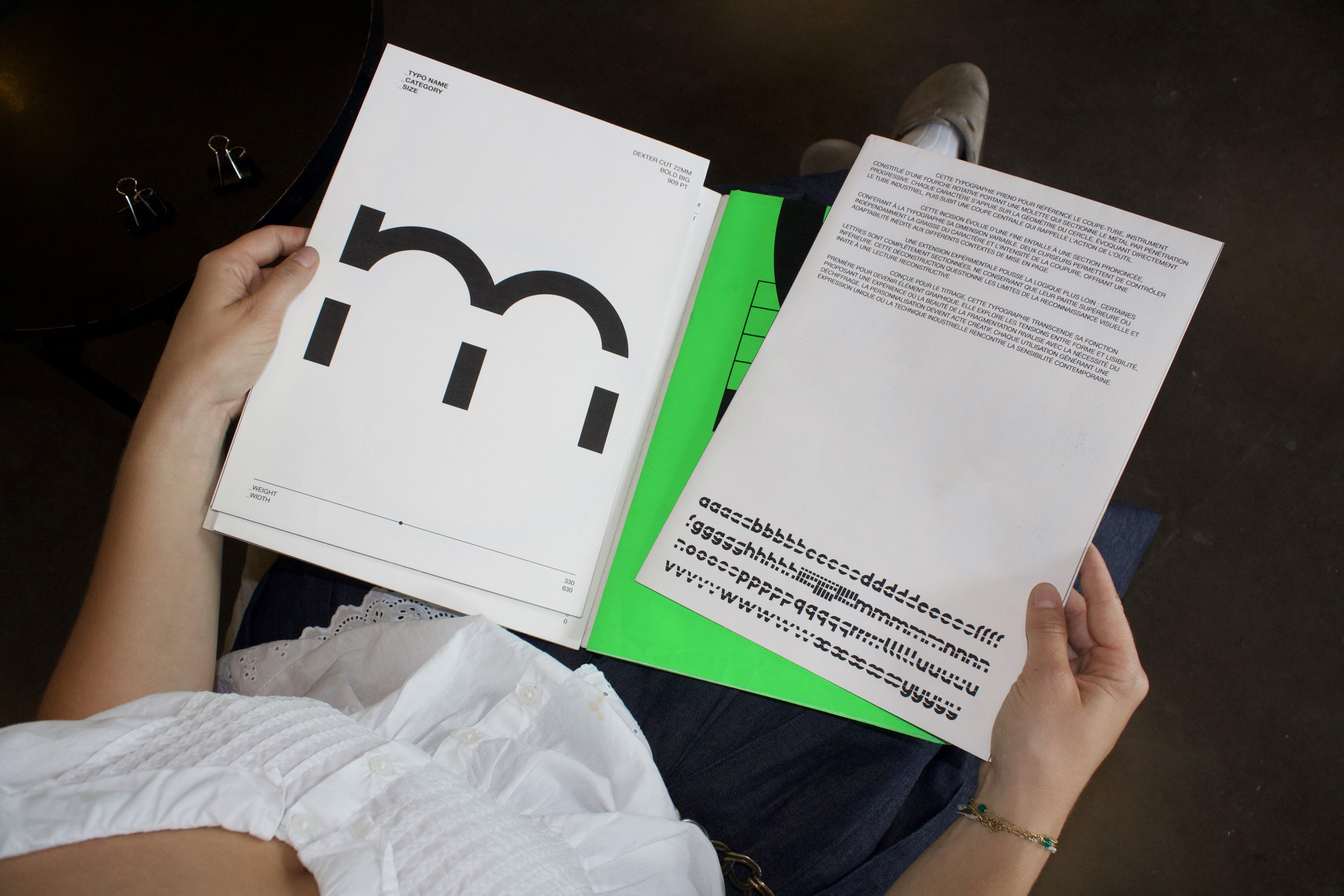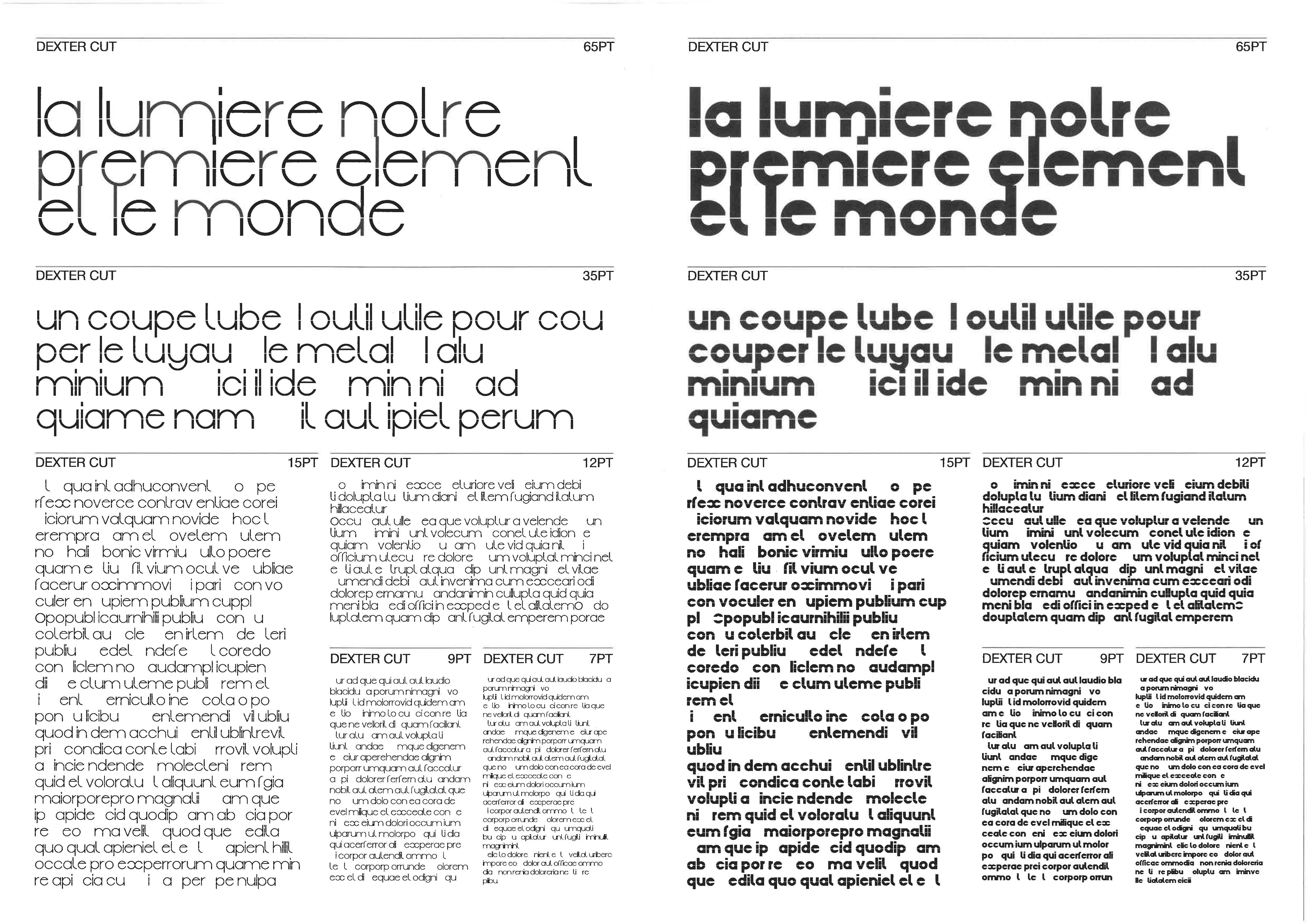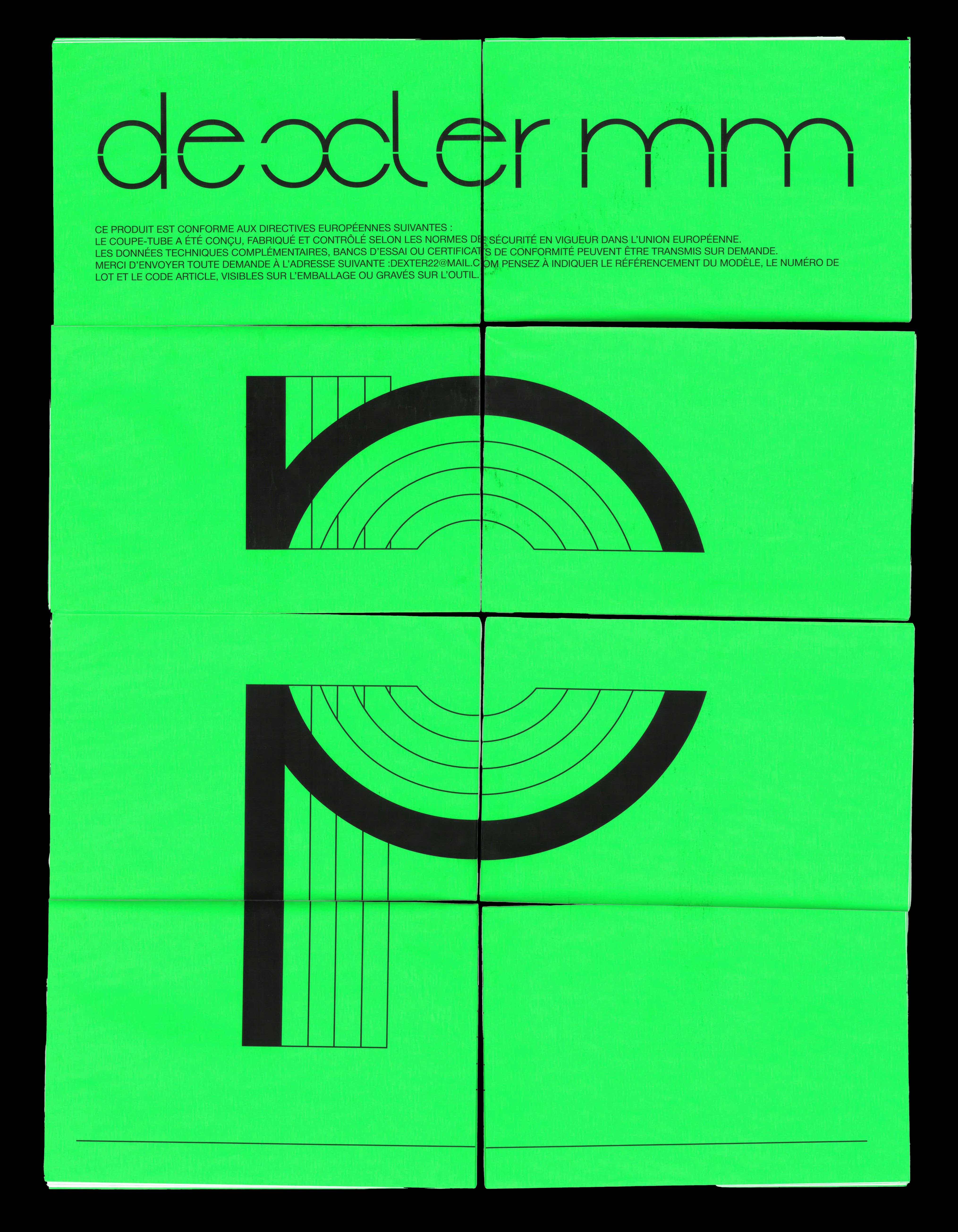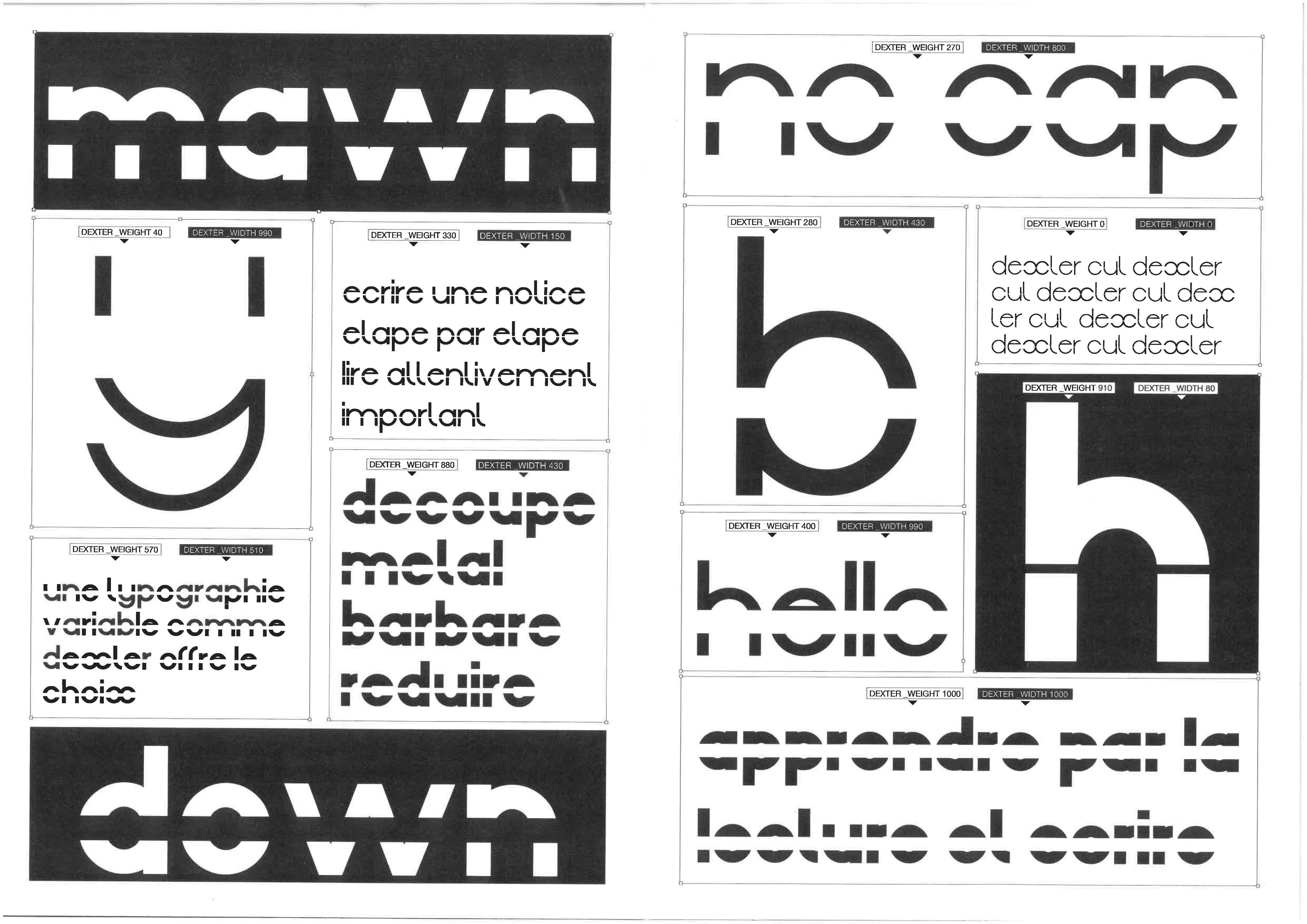 Creation of a variable typeface using a pipe cutter: study of the functioning, representation and use of the tool to design a font in Glyphs that is cut in the middle, with adjustable spacing. Work carried out in a group.