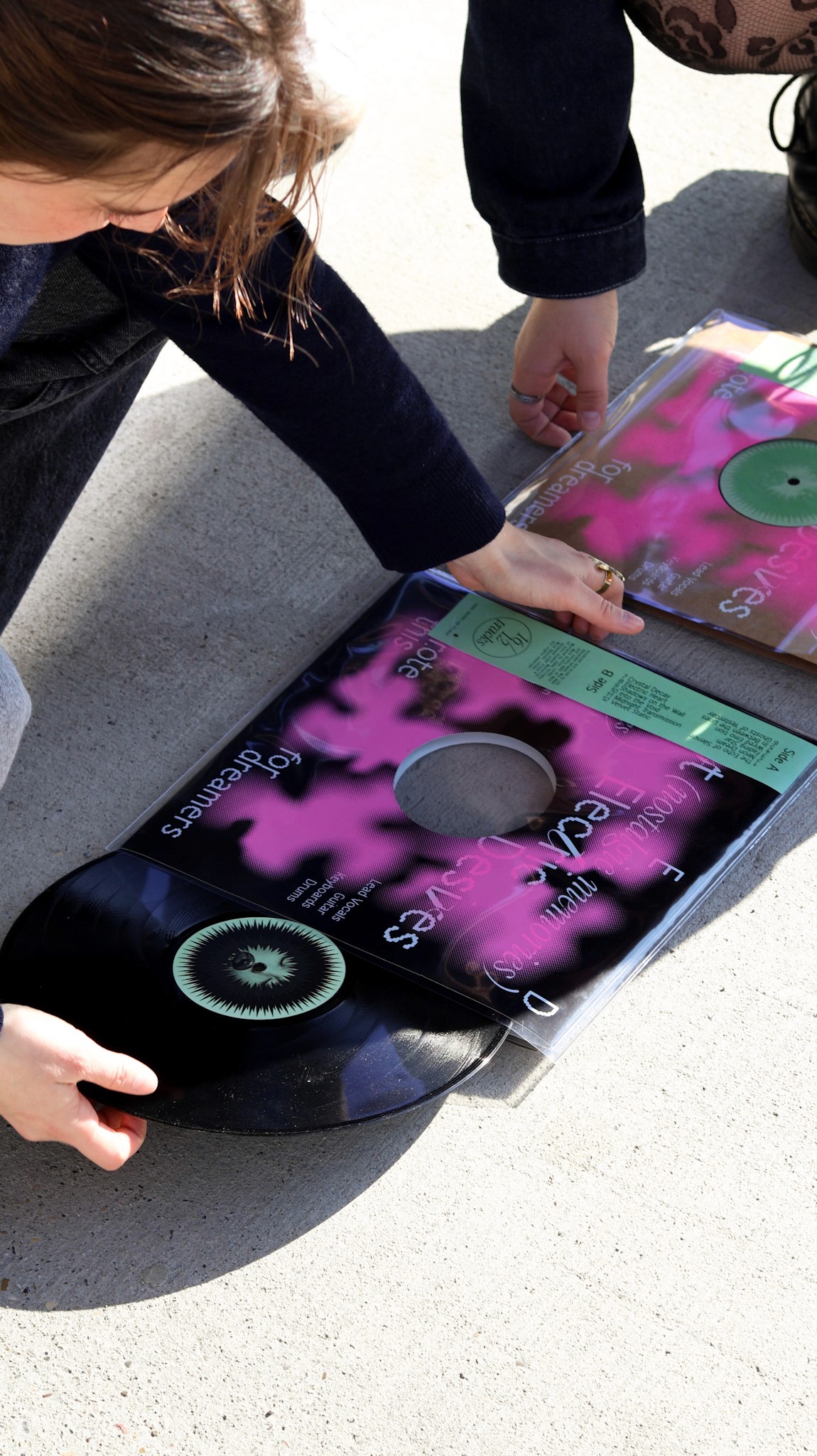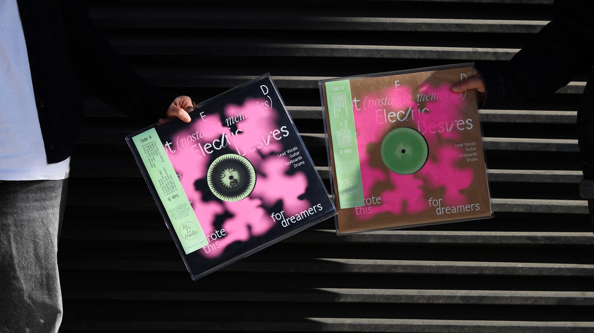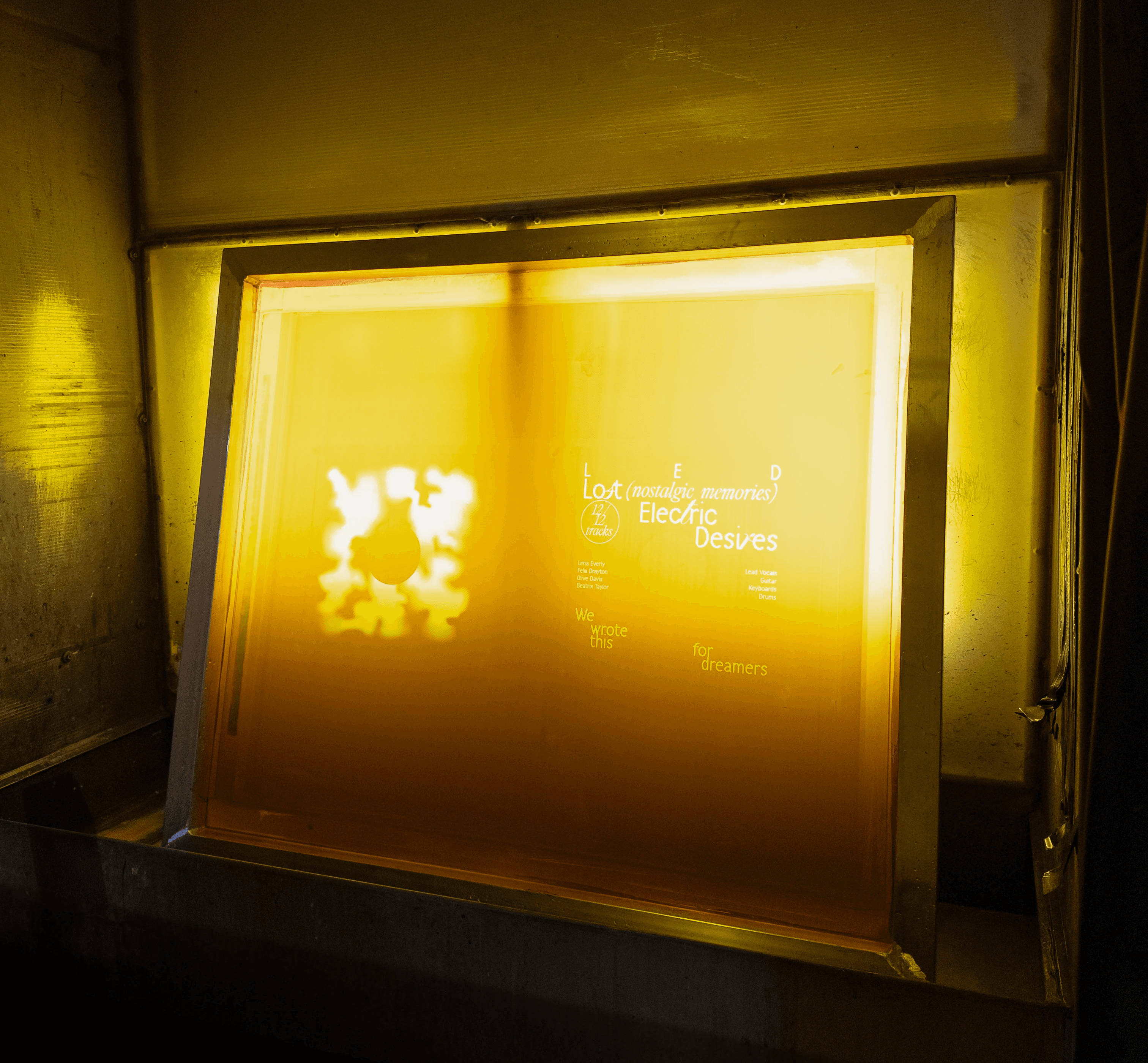 During a workshop on vinyl sleeves and screen printing, we created three variations of a sleeve for the fictional band L.E.D, screen printed on cardboard sleeves. Harber and Playground typefaces (Pangram Pangram).