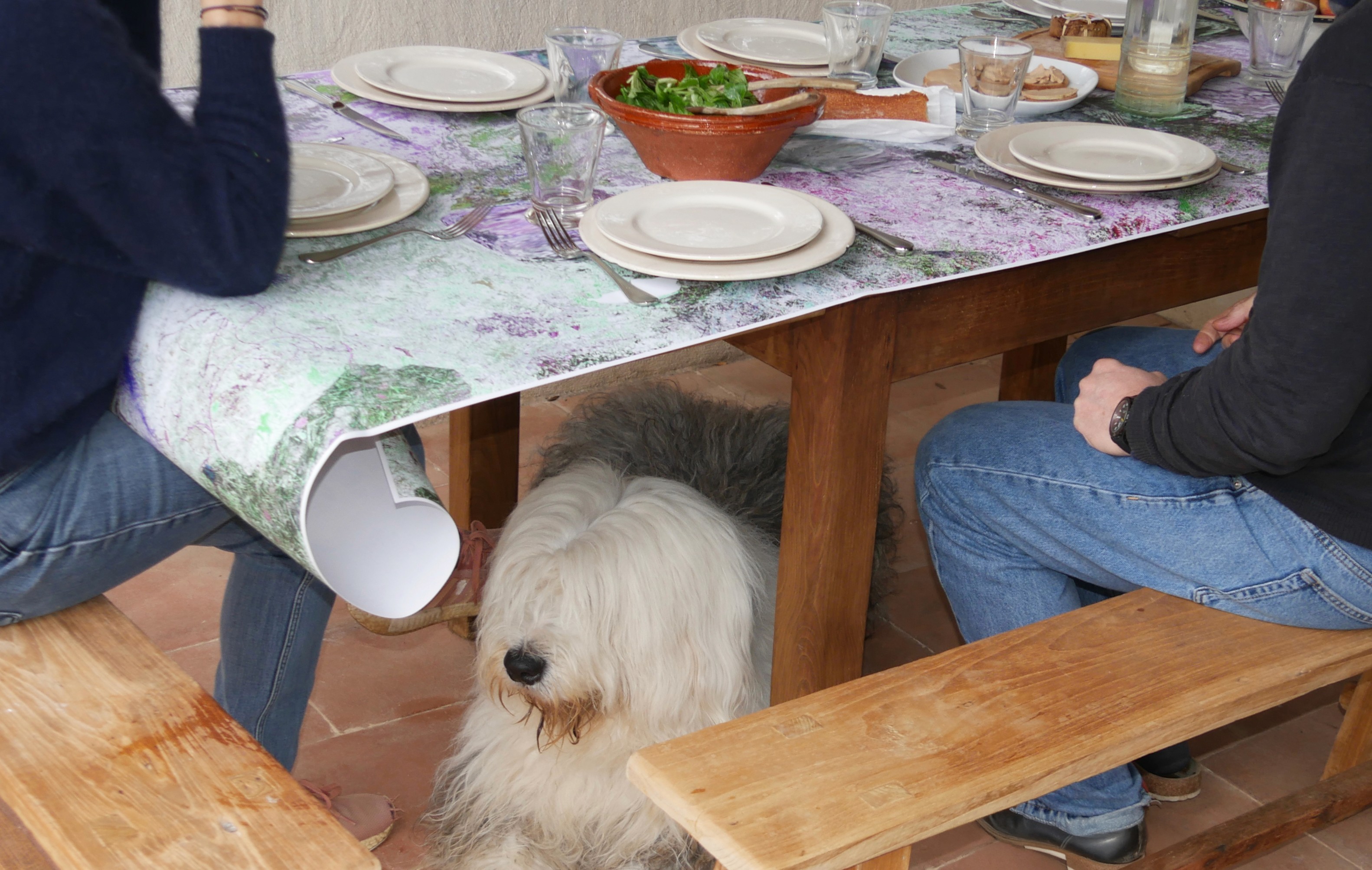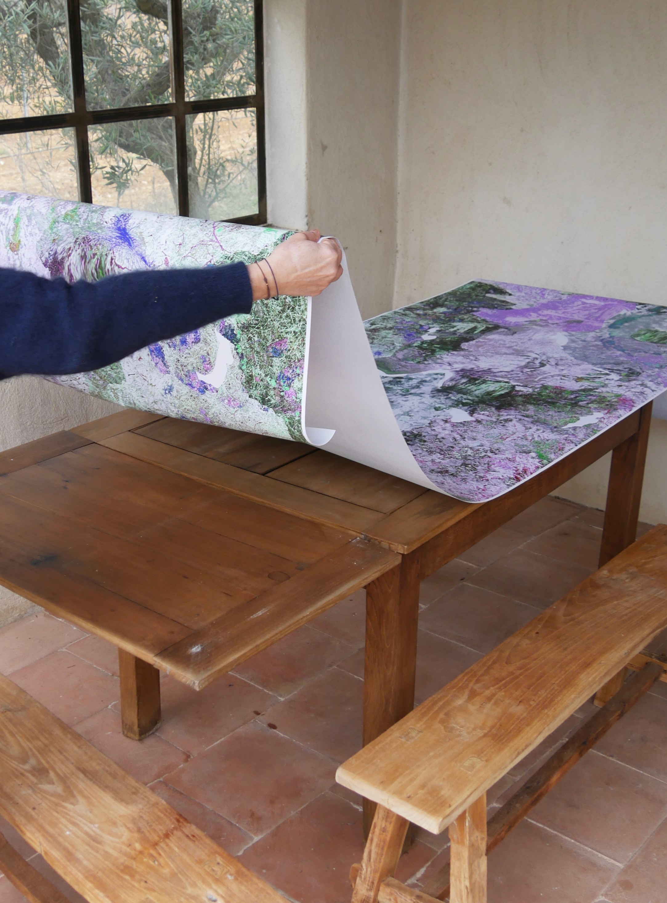 During a week-long workshop immersed in the Ardèche countryside, I explored the dialogue between technology and territory. Using mobile 3D scanning, I captured the raw textures of different forest soils. These digital imprints gave rise to a graphic pattern that plays on saturation and transparency. Designed as an invitation to bring the earth into our shared lives, this pattern became a three-metre tablecloth, adorning the shared dinners of the 17 residents of the house. Translated with DeepL.com (free version)
